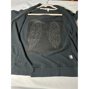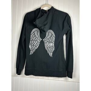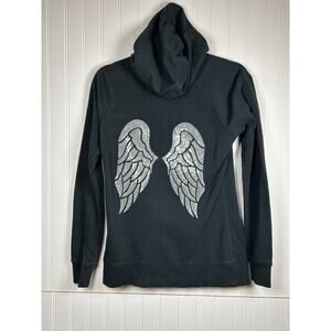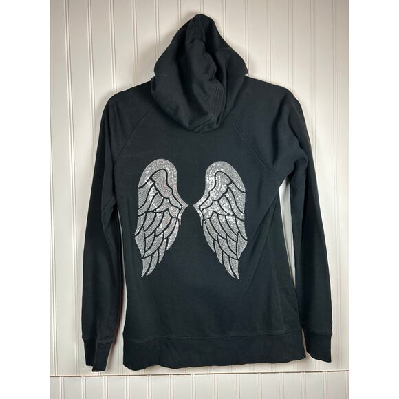 Victoria's Secret Black Angel Wing Sequin Hoodie Zip Up Sweatshirt size XS