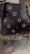 Elegant black shoulder bag with striking gold details. Features chain strap and eyelet design. Perfect for stylish outings.