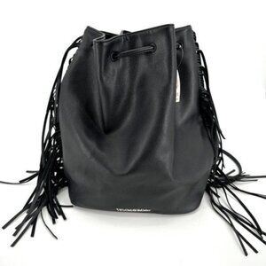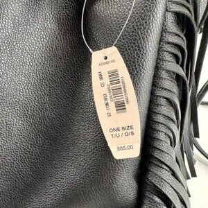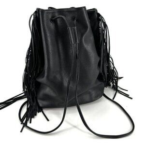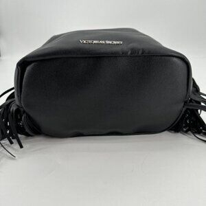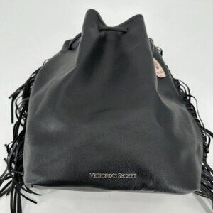 Victoria's Secret Black Faux Leather Adjustable Fringe Large Sling Backpack NEW