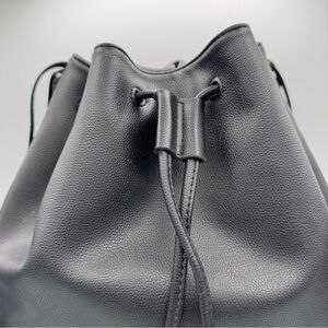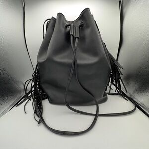 Victoria's Secret Black Faux Leather Shoulder Bucket Bag Fringe Backpack Tote