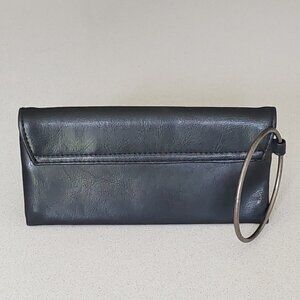 Victoria's Secret Black Faux Leather Vintage Wristlet with Metal Ring Handle