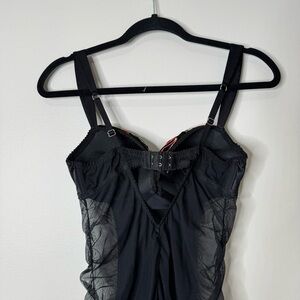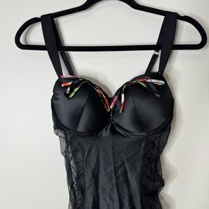 Victoria’s Secret Black & Floral Bow Lace Bustier Push Up Teddy Slip 36C