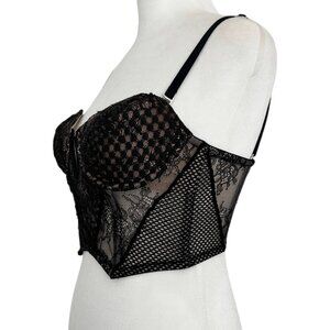 Victoria's Secret Black Floral Lace Corset Bustier Top Bra Vamp Witchy Goth 32C