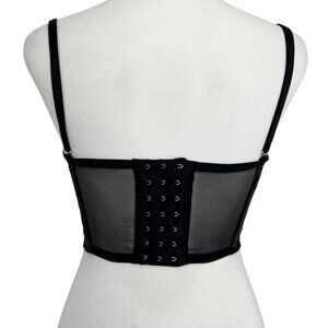 • Features: Adjustable straps, sheer mesh, hook and eye closure, structured boning for shaping, lightly Padded, underwire