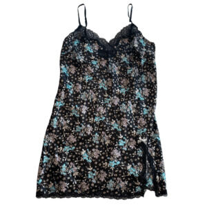 Victoria's Secret Black Floral Slip Dress With A Slit Medium