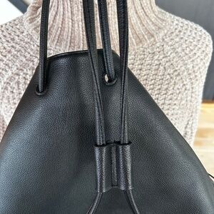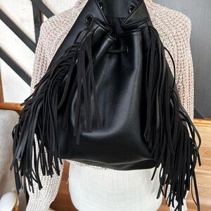 Victoria’s Secret Stylish black leather backpack with fringe details. Perfect for adding a chic touch to any outfit.