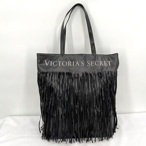 Stylish black tote with fringe detail. Features Victoria's Secret branding. Perfect for everyday use.