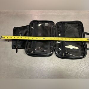 Victoria’s Secret zip around hanging makeup graffiti jet setter travel case. It has 2 large zip compartments and one small one inside. Pre-owned.