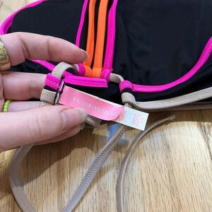 Victorias Secret Black High Neck Colorblock Racerback Bikini Top S