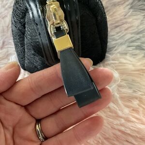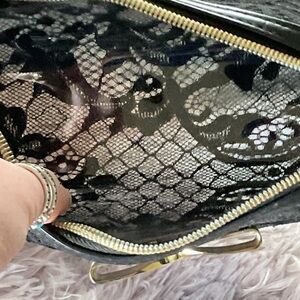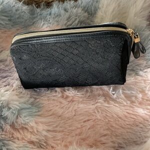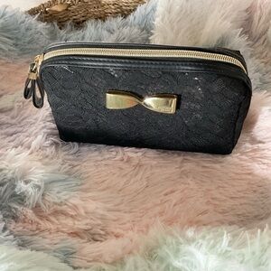 Victoria's Secret Black LACE Make Up Bag with gold bow,clear inside ❤️ EUC