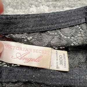 Victoria's Secret Black Lace ANGELS Lined Demi Bra Size 38DD Classic Sexy