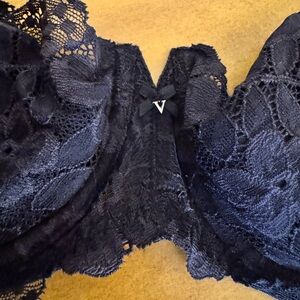 Victoria's Secret Black Lace Bra,Panties, Thigh High Nylons Intimates Collection