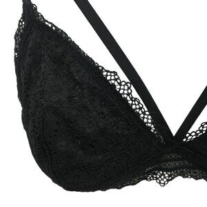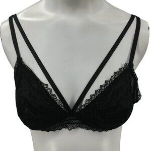 Victorias Secret Black Lace Caged Front Bralette Bra Size M Sheer Adjustable