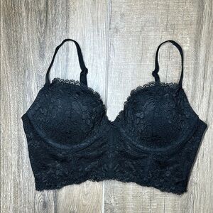 Victoria’s Secret Black Lace Longline Underwire Bra 36B Lightly Padded