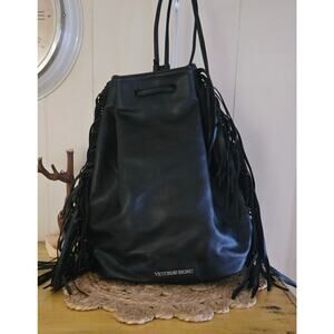 Victoria's Secret Black Ladies Drawstring Faux Leather Backpack