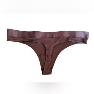 Elegant black thong. Ideal for everyday wear. Perfect under garments to disguise a no panty line look and neutral enough to go under a lot of clothes. Beautiful logo embellishment at the waist.