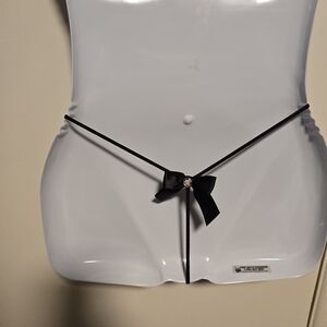 Victoria's Secret Black Mesh Thong with bow and jewel in back. NWOT, SZ M