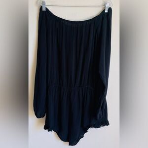 Victoria’s Secret Black Off Shoulder Tassel Sleep Romper Large