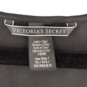 Victorias Secret Black Open Front Tie Closure Short Sleeve Lounge Kimono One Size