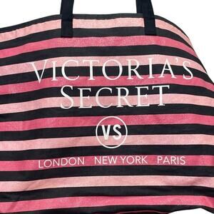 V+ictoria's Secret Black Pink Glitter Striped Zippered Tote Duffle Bag Long Strap