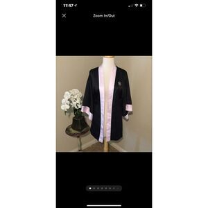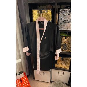Victoria Secret‘s black satin with it pink trim kimono robe missing sash but interior ties are still there no rips stains etc. if you have any questions please feel free to message me