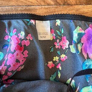 Victoria’s Secret Black & Purple Floral Lace Trim Babydoll Cami Chemise Slip Dre