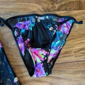 Victoria’s Secret Black & Purple Floral Lace Trim Babydoll Cami Chemise Slip Dress & Matching Panty.