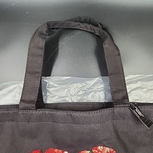 Victorias Secret Black Red Sequins Tote Large Travel Bag Valentines Day Lips NEW
