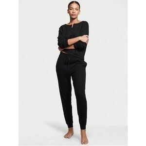 Victoria's Secret Black Regular Glow Waffle Henley Top