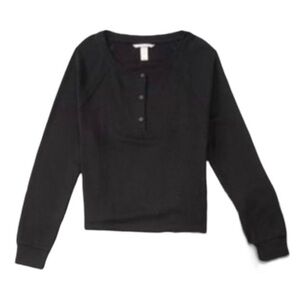 Victoria's Secret Black Regular Glow Waffle Henley Top Size L