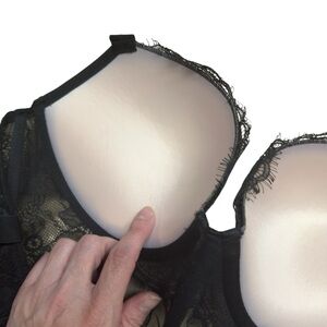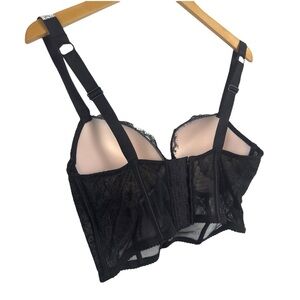 Victoria’s Secret Black Rhinestone Strap Pushup Corset Bra Top 36D Floral Lace