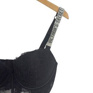 Victoria’s Secret Very Sexy Black Rhinestone Strap Lingerie Pushup Corset Bra Top 36D