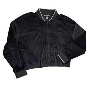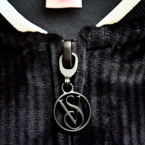 Victoria’s Secret Black Ribbed Velour Zip-Up Jacket – Size L