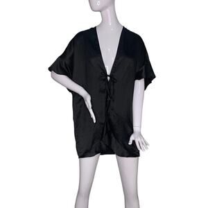 Victoria’s Secret Black Satin Robe Tide on Front White Love Print on Back OS