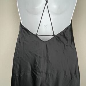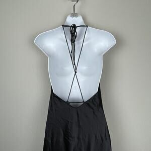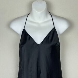 Victoria's Secret Black Satin Slip Dress Size Small Behind the Neck Tie Y2K Coquette
