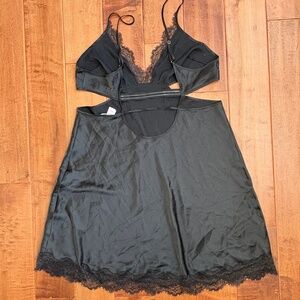Victoria's Secret Black Satin/Lace Cutout Slip Chemise Size XL Babydoll
