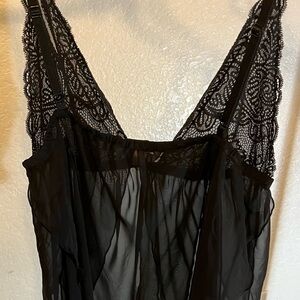 Victoria's Secret Black Sheer Chemise with Lace Trim