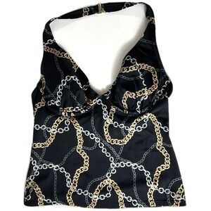 Victoria's Secret Black Silver Gold Chain Print Pushup Halter Tankini Sz 36B