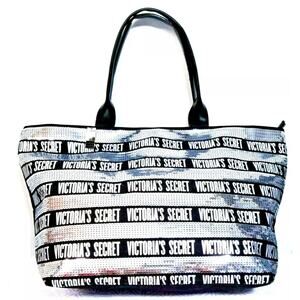 Victoria’s Secret Black Silver Sequin Bling Large Tote Weekender Bag Limited Ed.