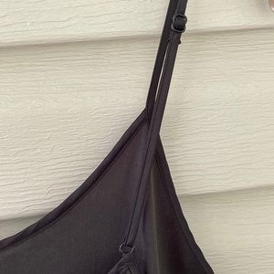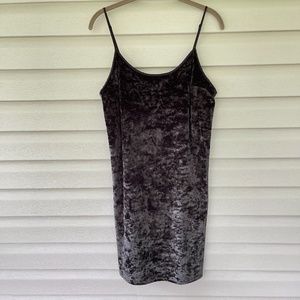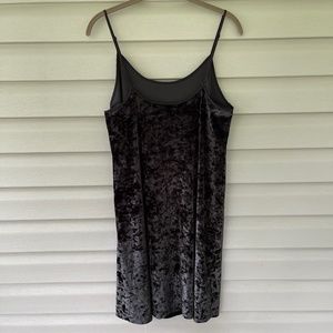 Victoria's Secret black with gray tones thin/spaghetti adjustable strap crushed velvet slip dress. Very soft and classic.