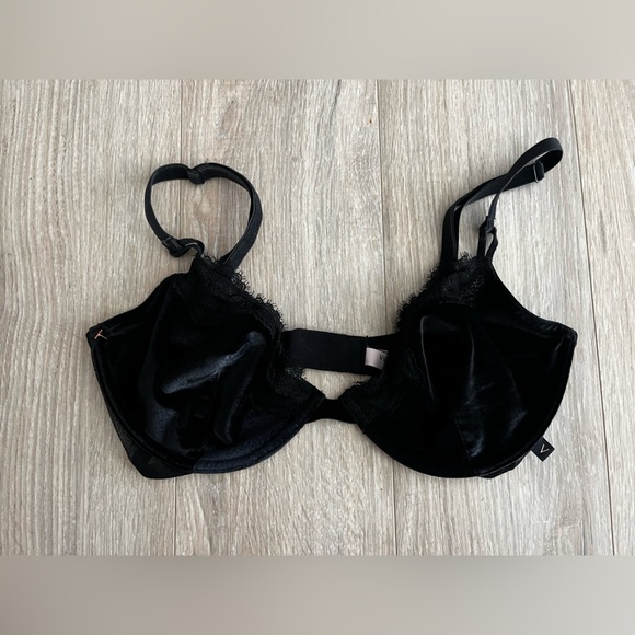 Victoria’s Secret Black Unlined Velvet & Lace Trim Demi Bra Wired Size 34DD