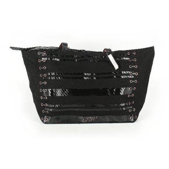 Victoria's Secret Black Whipstitch Graphic Tote/Weekender