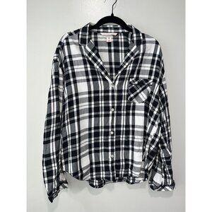 Victorias Secret Black & White Plaid Button-Up Sleep Shirt, Small