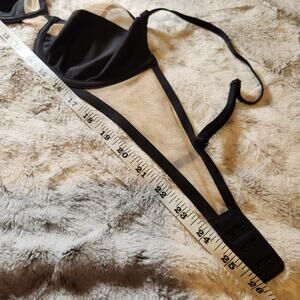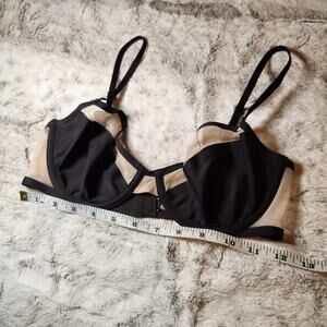 Victoria's Secret Black and Beige Mesh Unlined Luxe Lingerie Demi Bra 32D