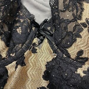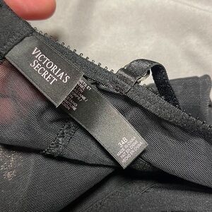Victorias Secret Black and Cream Lace Lingerie with Stocking Clips 34B