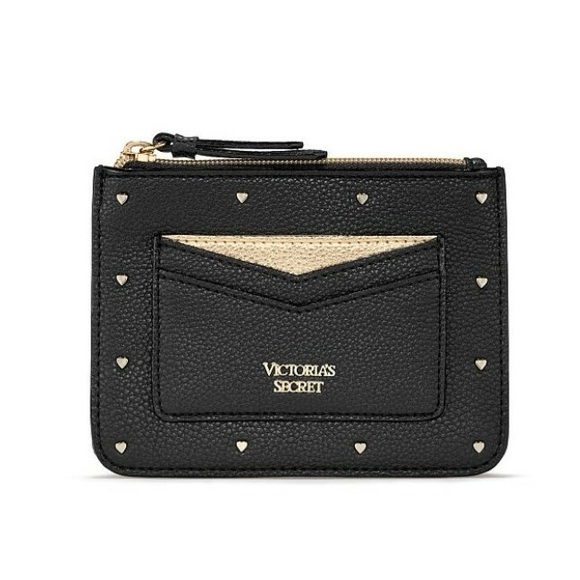 Victoria's Secret Black and Gold Heart Studs Card and Key Holder - NWOT