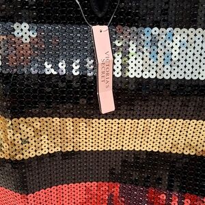 Shimmering sequin fabric with black and gold tones. Ideal for glamorous designs.