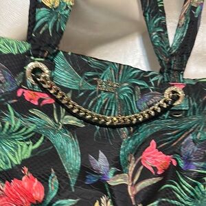 Victoria's Secret Black and Green Tote Bag with Tropical Design
