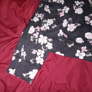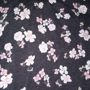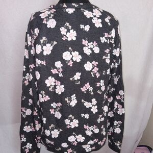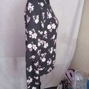 Chic black sweater with pink floral pattern. Features delicate lace trim. super soft!:)