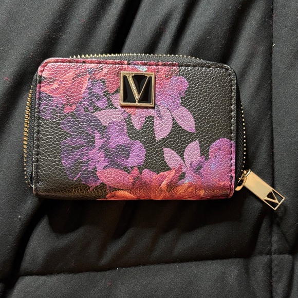 Victoria's Secret Black and Pink Floral Wallet